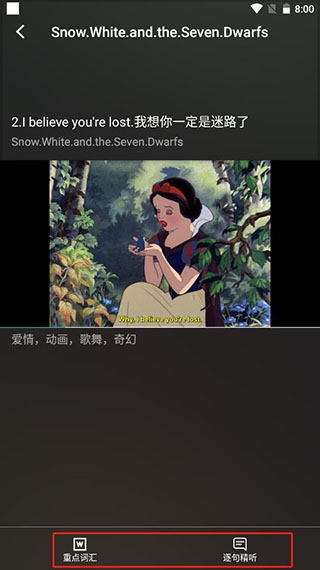 4、通过观看视频,学习口语和发音,同时查看重点词汇并逐句听写;